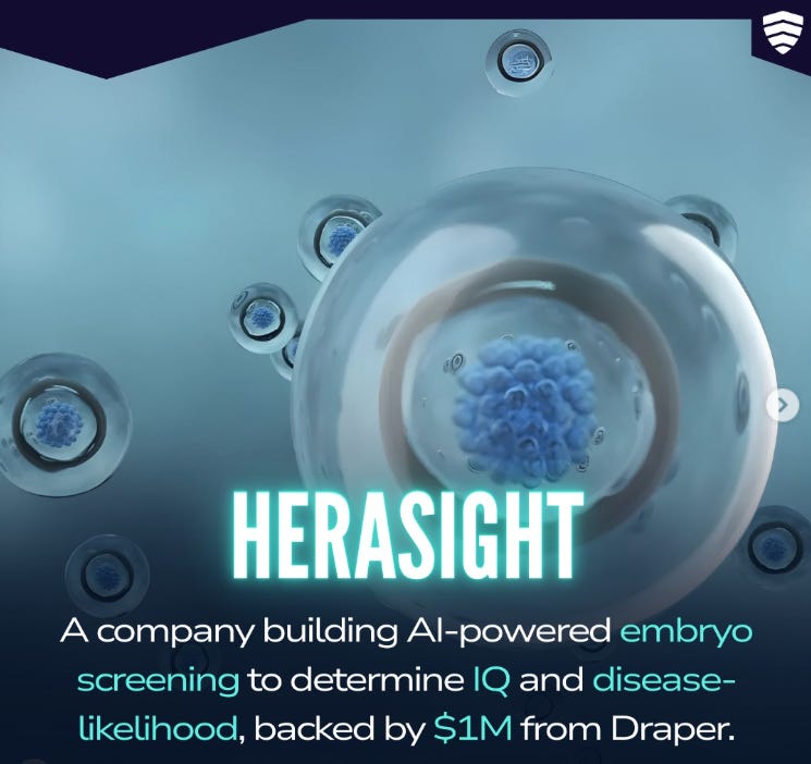 The U.S. company Herasight reportedly charges $50,000 to assess an unlimited number of embryos. The Guardian notes: “There is no suggestion Herasight is in breach of any regulations.”